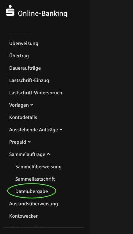 Die mobile App der Sparkasse bietet aktuell keinen Dateiupload. Stattdessen muss man auf der Webseite des Online-Banking